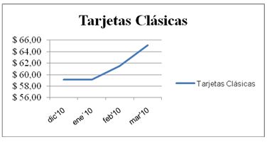 En dicho gráfico se pone de manifiesto el incremento que experimentaron los costos por renovación de tarjetas Clásicas.
