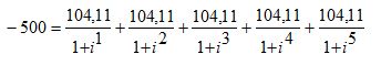 A los fines prácticos analicemos el préstamo que venimos utilizado como ejemplo, siendo que el Vn es de $ 500 a devolver en cinco cuotas mensuales a una tasa del 10% TNA.