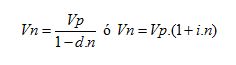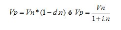 Vn: es el monto tomado en préstamo Vp: Valor efectivamente recibido en préstamo d: Tasa de descuento periódica i: Tasa de interés periódica n: Cantidad de períodos