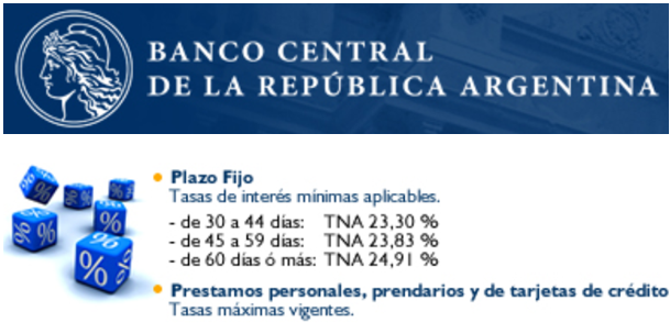 Actualmente las tasas de plazos fijos están reguladas por el Banco Central (BCRA), es decir que el BCRA obliga a los bancos a pagar una tasa mínima por dichos depósitos. Esto aplica para depósitos de personas físicas menores a $ 350.000.