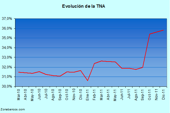 A pesar de que los cambios no alcanzaron para anular los aumentos producidos en los meses previos, en el cuadro que sigue podemos ver que el camino, hacia la TNA promedio que regía antes del último trimestre del año 2011, ya está marcado.