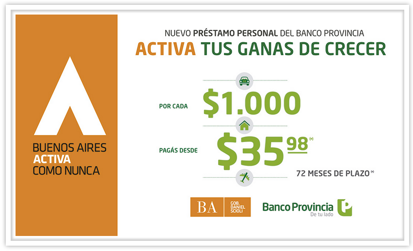 El otorgamiento de préstamos personales del Banco Provincia de Buenos Aires evidencia una tendencia alcista de alrededor del 50 %. Nuevos Préstamos ACTIVA hasta 300.000 pesos a 72 meses