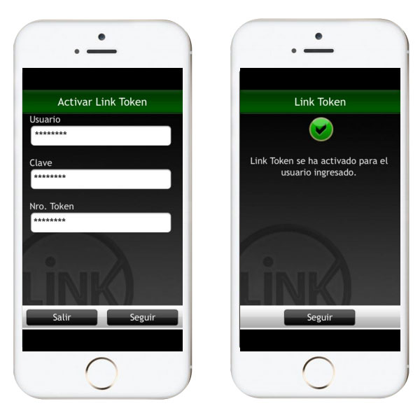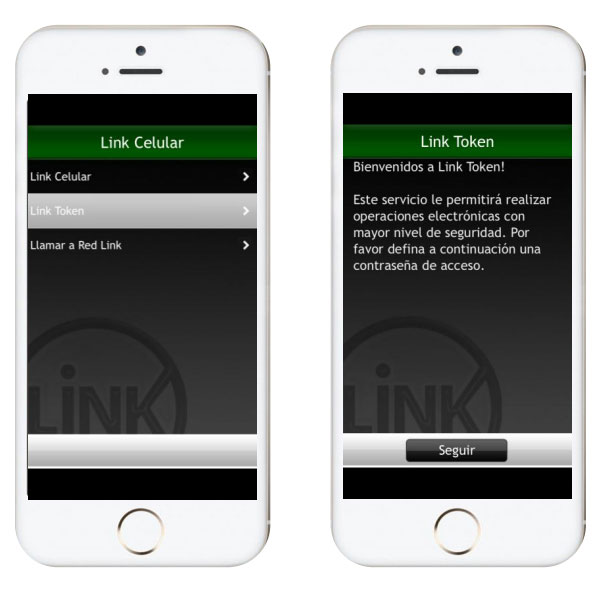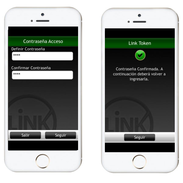 3. Activá Link Token en tu celular accediendo a Link Celular > Link Token. Allí deberás ingresar una contraseña y confirmarla. La misma debe ser de 4 números.