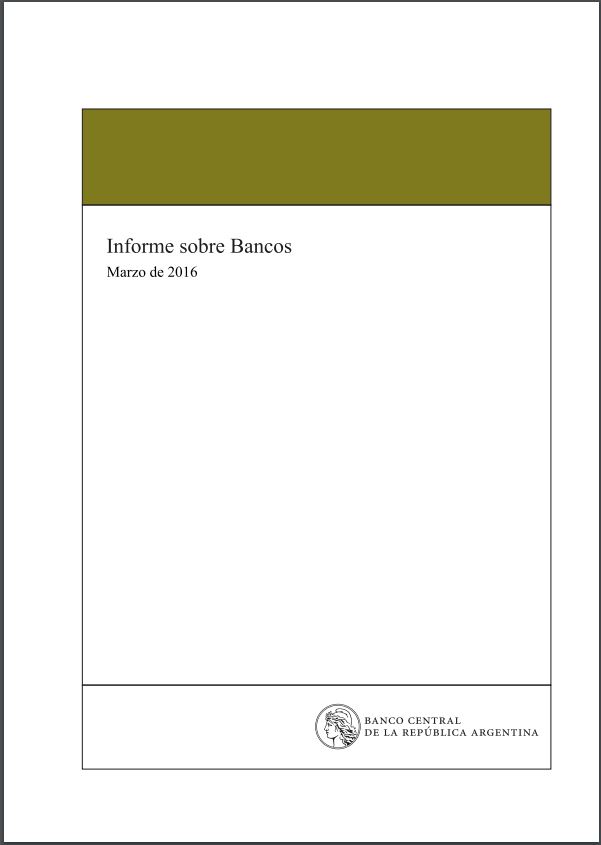 A continuación, se presenta la síntesis del "Informe sobre bancos" del BCRA correspondiente al mes de marzo de 2016 y de fecha 30 de mayo de 2016: