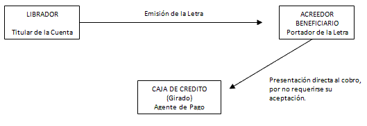 Por consiguiente, no hay aceptante, es decir, no hay obligado principal en el circuito de las letras de cambio para uso de las Cajas de Crédito.