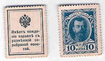 Rusia, con el billete de 10 Kopecks, es el billete más pequeño acuñado. Además de este billete, Rusia lanzaba por el 1915, otros valores de igual tamaño.