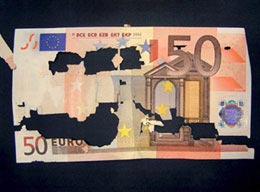 Las autoridades alemanas detectaron a mediados del 2007, unos mil billetes de hasta 200 euros que se deshacen al entrar en contacto con la mano. Creen que puede ser un sabotaje con productos químicos. Los ejemplares dañados se pueden cambiar en el banco si se conserva al menos la mitad del papel.