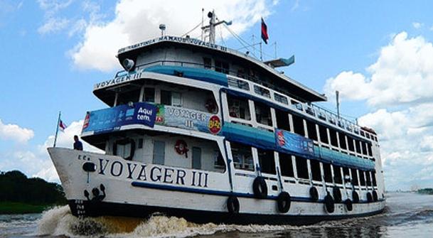 Además de albergar una filial bancaria y llevar pasajeros, el Voyager III, de unos 40 metros de eslora y tres cubiertas, almacena 500 toneladas de frijoles, pollo, blanqueador y otra mercancía que vende a lo largo de un trayecto de más de 1.600 kilómetros.