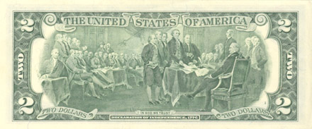 En cuanto a su aspecto, en el anverso aparece el retrato del 3er presidente de Estados Unidos, Thomas Jefferson (1801–1809), y en el reverso una reproducción de la obra La Declaración de Independencia de John Trumbull.